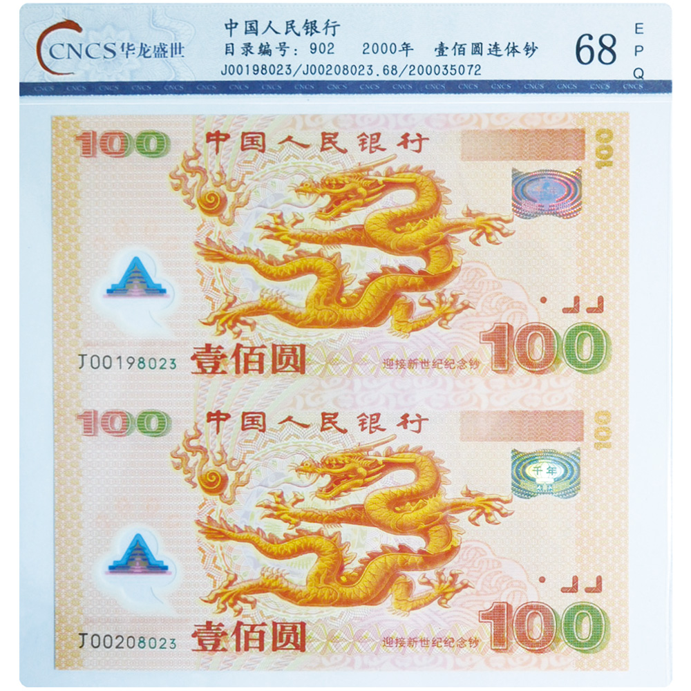 【藏品名稱】2000年千禧龍雙連體鈔